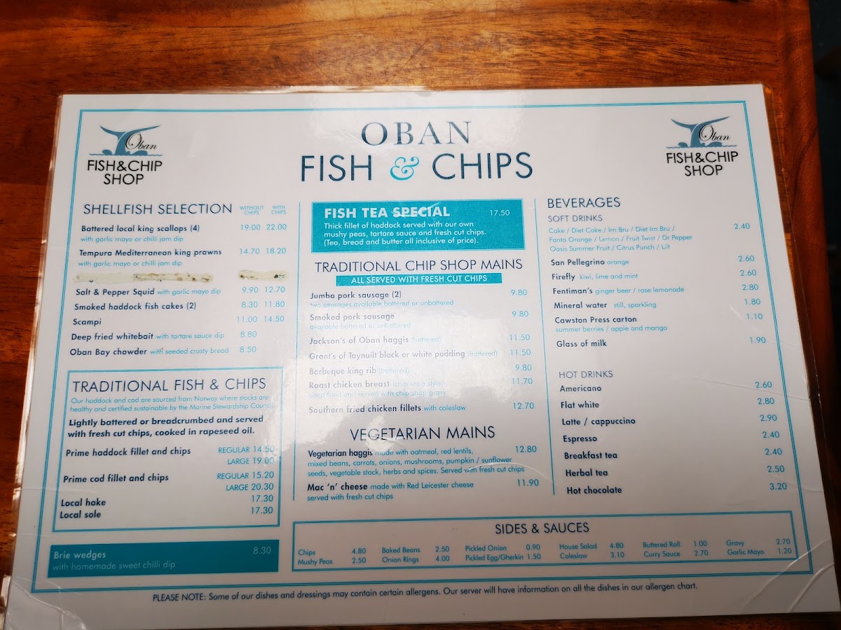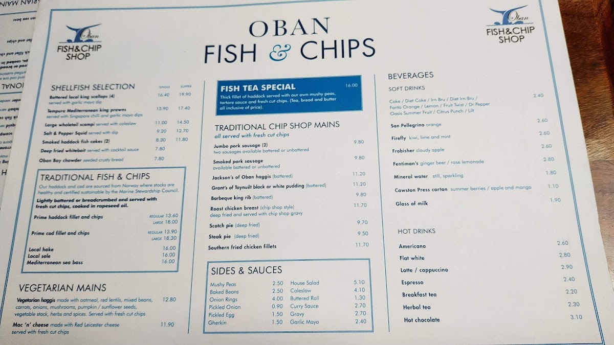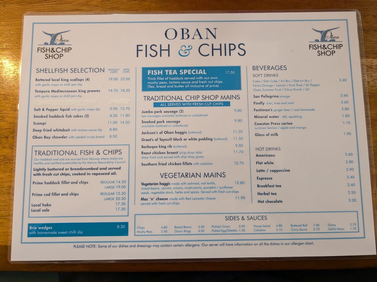 Welcome to The Oban Fish & Chip Shop, where tradition meets taste in the heart of Oban. Nestled at 116 George St, this gem brings you the quintessential British experience with a menu that dazzles. The shop is renowned for its digital fryers and the use of rapeseed oil, ensuring that each bite is crisp and light.